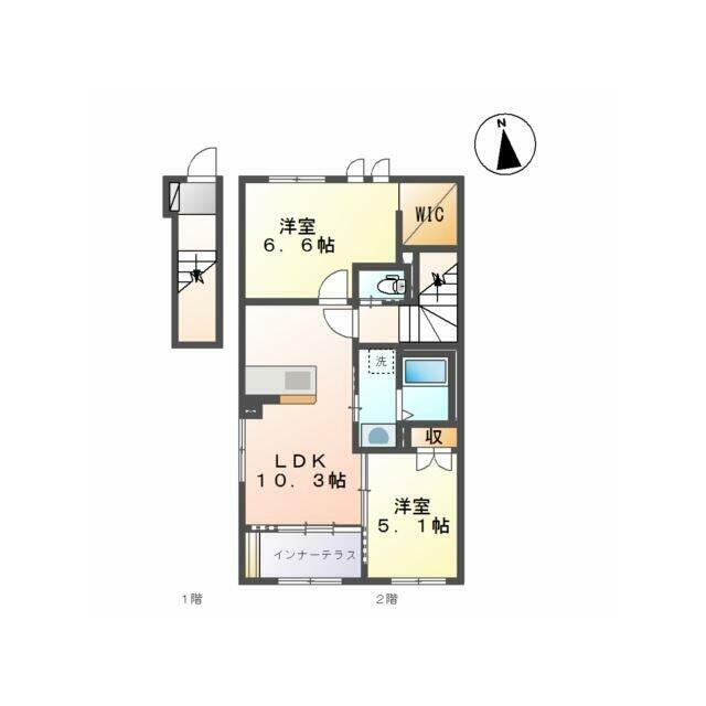 2LDK(LDK10.8、洋5.1、洋6.6) |