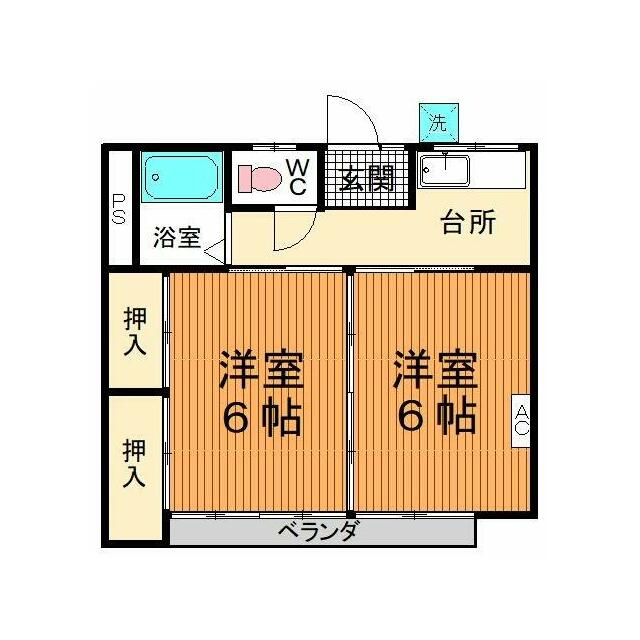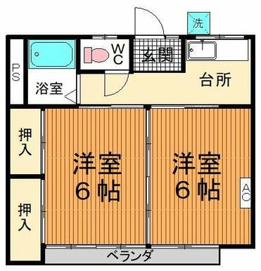 | 間取り | 2K(洋6、洋6) | 主要採光面 | 南東 |