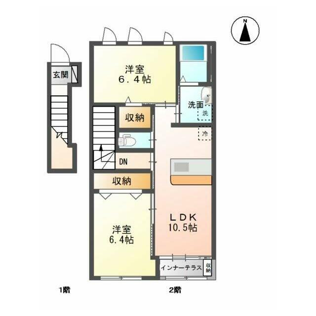 2LDK(LDK10.5、洋6.4×2) |