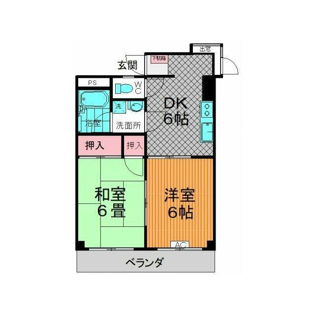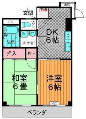 | 間取り | 2DK(DK6、和6、洋6) | 主要採光面 | 南 |