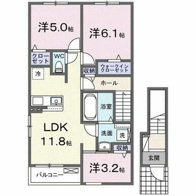 | 間取り | 3LDK(LDK11.8、洋6.1、洋5、洋3.2) | 主要採光面 | 東 |