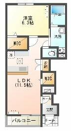 1LDK(LDK11.5、洋6.3) |